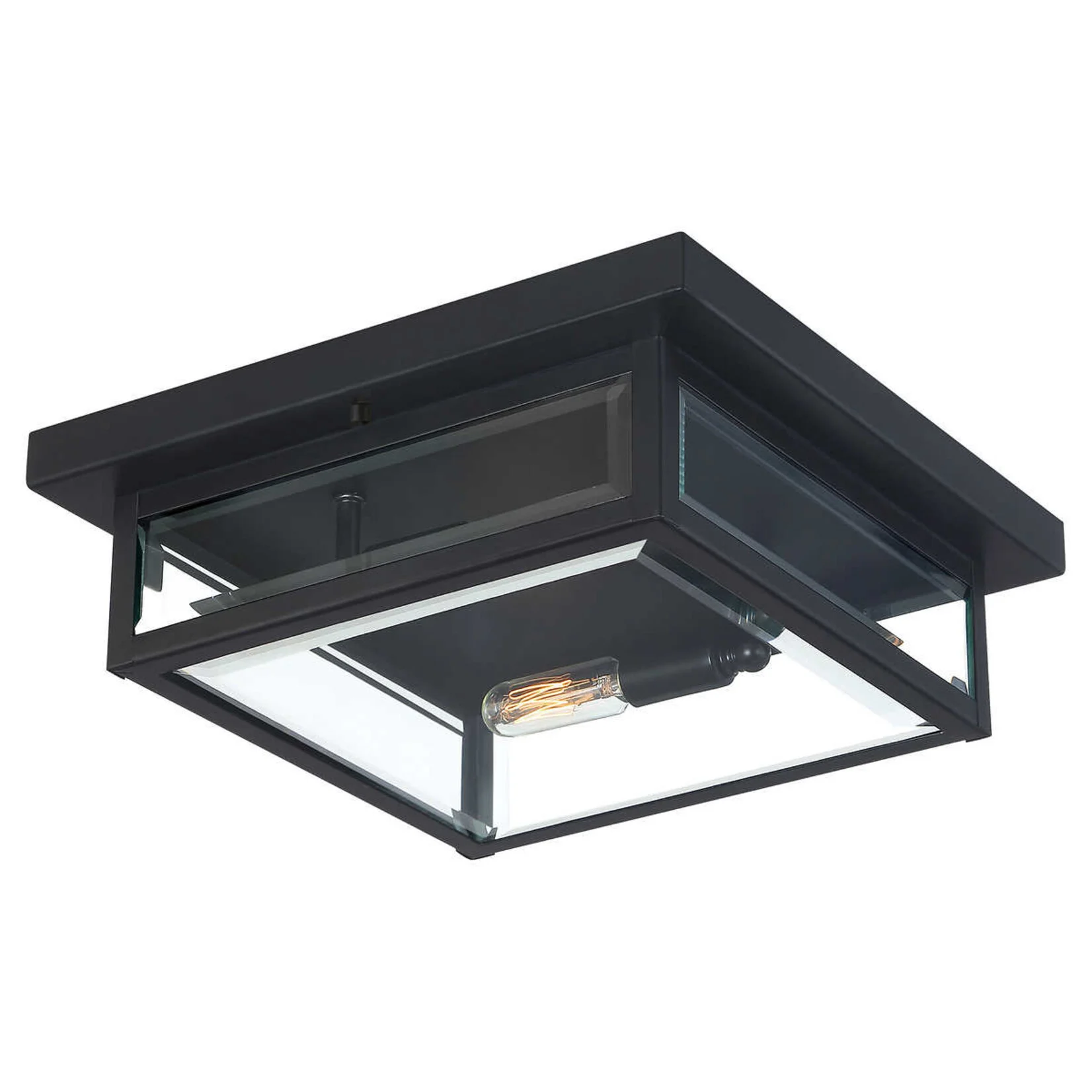 Ashley Harbour Lighting Harlow Indoor/Outdoor Flush Mount Matte Black Finish, Clear Beveled Glass, 2 x LED 6watt Candleabra Base B Bulbs Inlcuded : Value $50 – Donated By Salvation Army